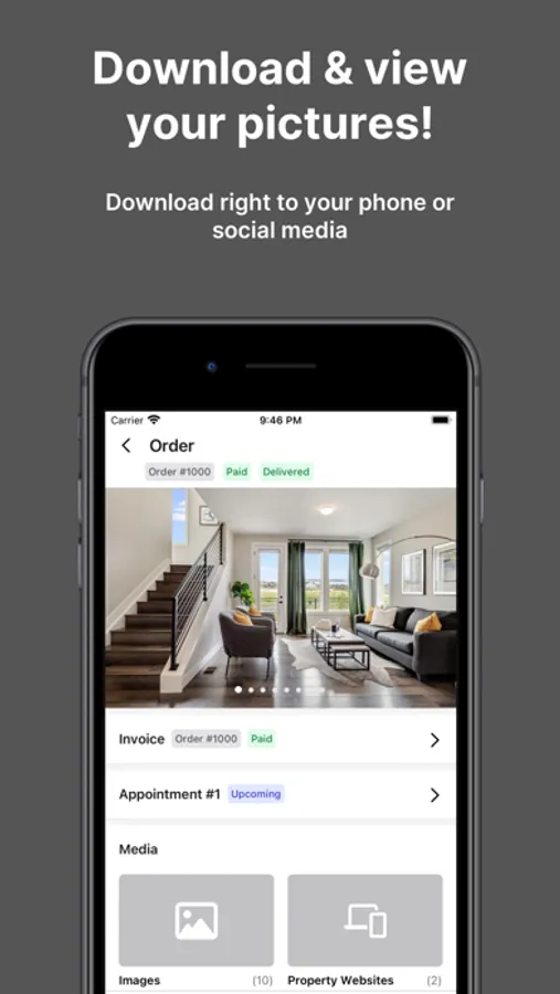 Download our app to schedule your shoot, manage properties, and download your photos/videos.
