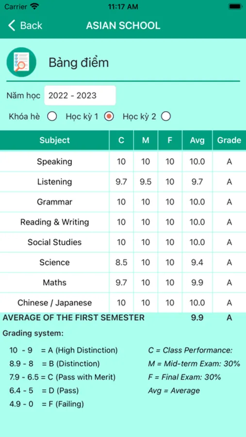 Application that allows students and parents to monitor student learning at AsianSchool IPS