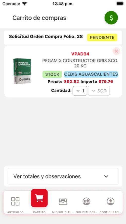 App para captura de pedidos, consulta de precios y disponibilidad de artículos.