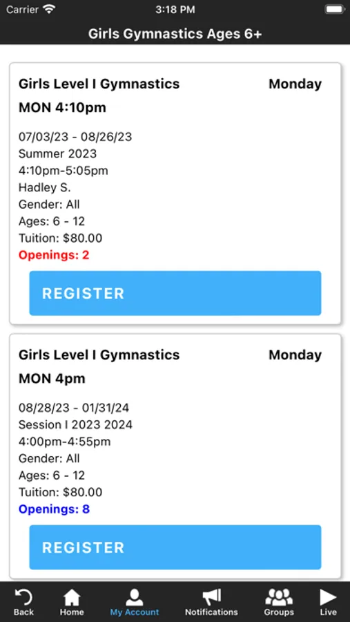 The SVGTC Connect app allows you to manage your account with ease, register for classes, parties, and special events. You'll also receive important notifications about class changes, closings, registration openings, special announcements, and upcoming events.