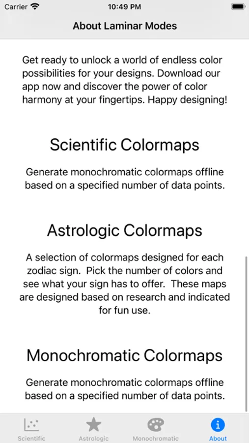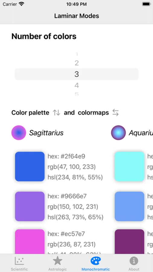 Our app is your go-to tool for designing stunning user interfaces with ease. Say goodbye to the struggle of finding the perfect color combinations for your backgrounds, infographics, charts, and more. With just a few taps, our app generates a wide variety of beautiful color palettes that will elevate your designs to new heights.