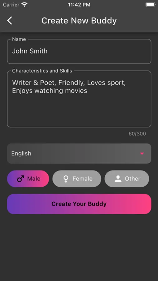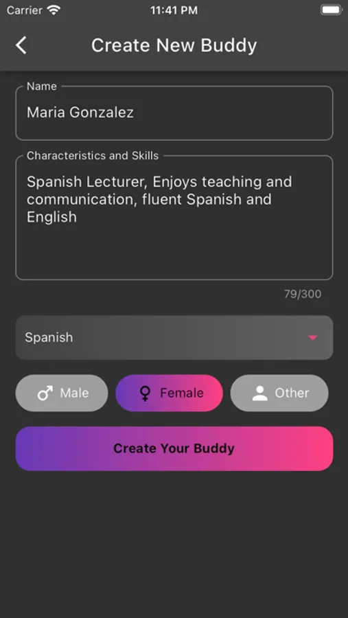 Gender Preference: Select a gender for your buddy, ensuring a personalized and comfortable interaction.