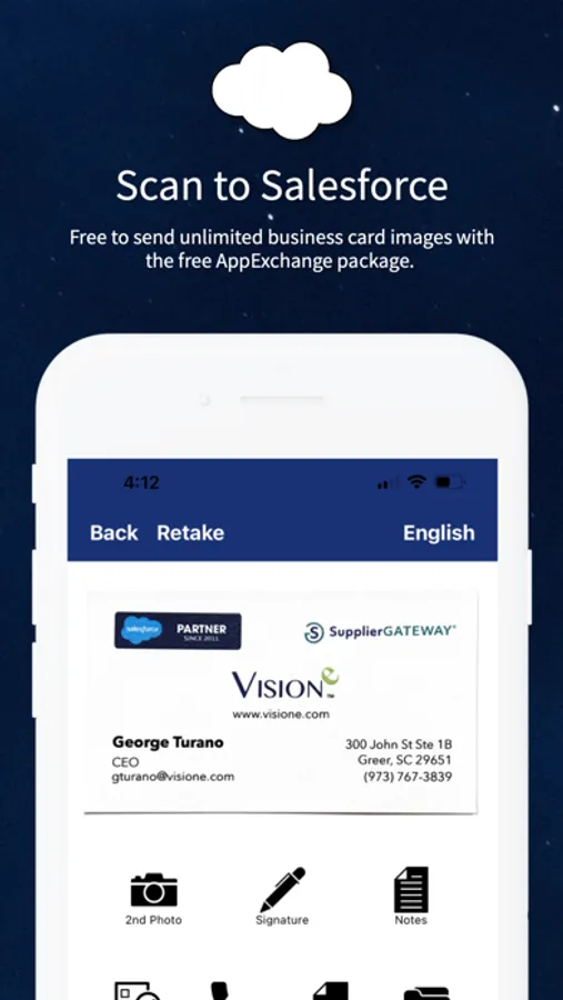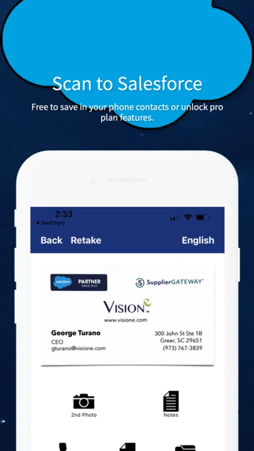 -- Unlimited OCR results to populate text fields on your phone to save in Phone contacts or send to Salesforce as a Lead or Contact