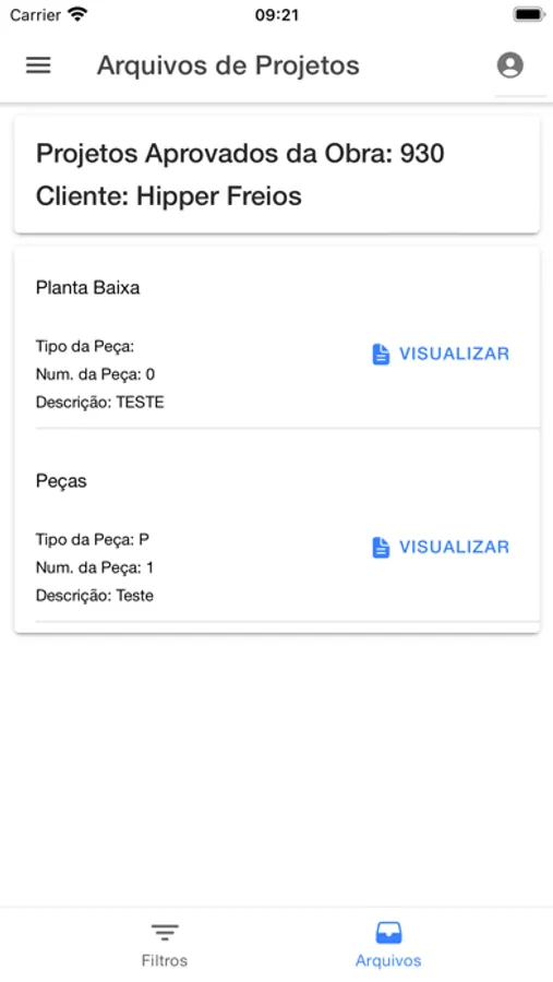 Através do aplicativo, você consegue listar e visualizar projetos (planta baixa, estrutura, etc), já aprovados, de uma determinada obra.