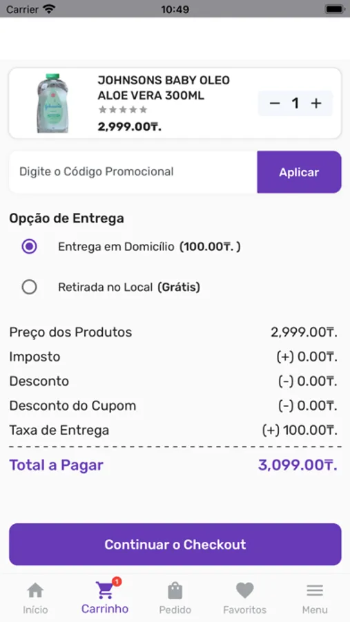 Carrinho de Compras Integrado: Adicione produtos ao seu carrinho de compras com apenas alguns toques e gerencie facilmente as quantidades e variantes desejadas. Prossiga para o pagamento de forma segura e conveniente, garantindo uma experiência de compra tranquila.