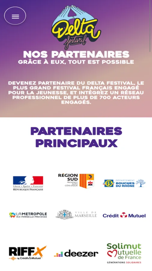 The Delta Festival app is the essential tool to fully enjoy the musical and engaging experience offered by Delta Festival, one of the trendiest music events in France. Whether you're a music enthusiast, a festival regular, or simply curious, this app will accompany you throughout the festival and allow you to make the most of every moment.