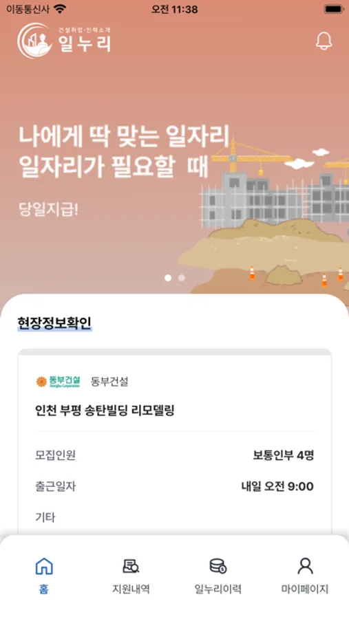 건설현장에 필요한 맞춤형 일자리와 기술과 적성에 맞는 장기적 일자리를 제공하고 “Best partner for your Success!”라는 이념을 가지고 건설 관련 근로자와 기업 모두의 최고의 성공 파트너가 되도록 최선의 노력을 다하겠습니다.