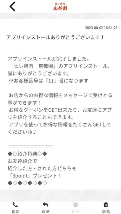 焼肉 京都園のアプリをSNSを通じてお友達に紹介する事ができます。