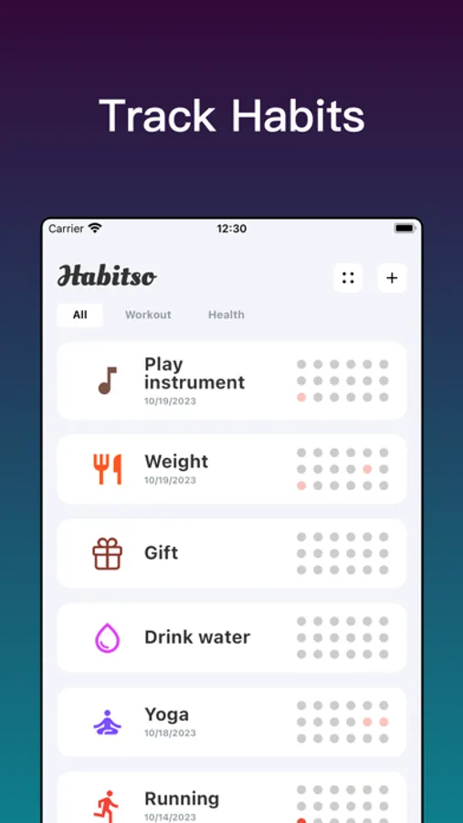 This application empowers you to effortlessly cultivate daily habits and monitor your progress every step of the way. Habitso is your trusty companion in building lasting routines and achieving your goals. We'll keep you on track with timely reminders, offer insightful habit statistics, and visualize your progress through informative charts.
