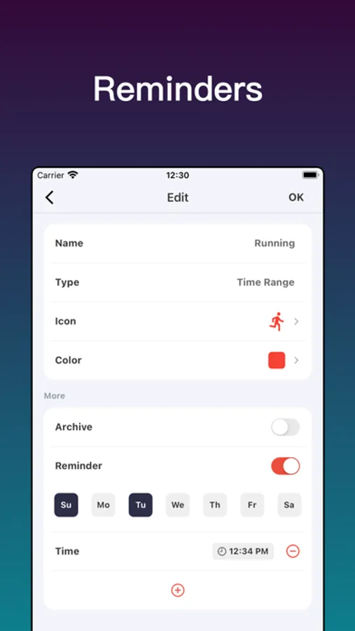 • Reminders: Set multiple reminders for each habit, ensuring you never forget your daily commitment.