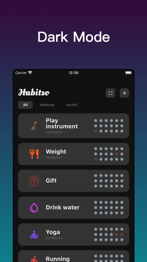 • Home Screen Widgets: Easily access and interact with your habits right from your device's home screen.