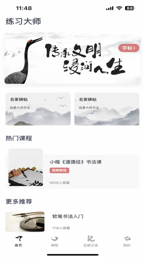 【书法课程】内容丰富的视频教程,可以让你想学就学,并且认识多个书法字体的精髓;