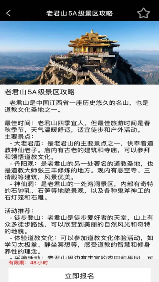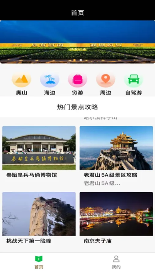 浏览到各大景点的景点基本信息、景点活动、景点开放时间等各种详细信息,产品根据用户喜好,专门为用户打造了爬山、海边游、穷游等特色攻略板块