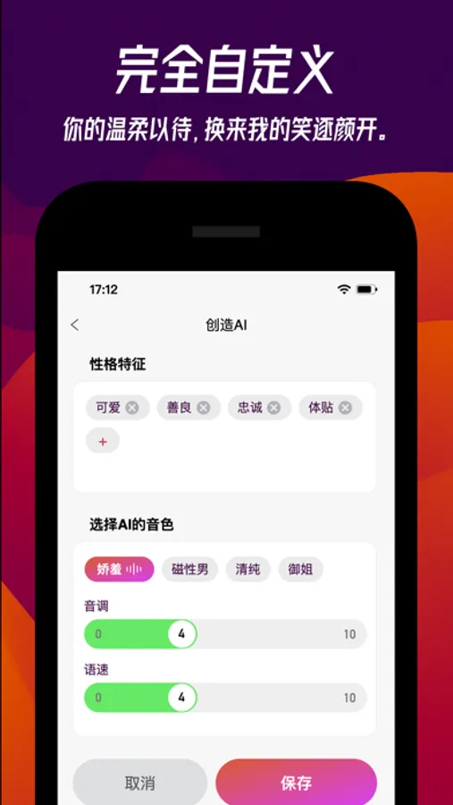 使用我们的应用十分简单,首先,您需要完善您的个人信息,并创建或更改一个新的AI机器人,您可以根据自己的需求,选择不同的AI身份,并为您的机器人起一个独特的名称,然后就可以开始跟TA聊天了,可以发送文字和语音哦。