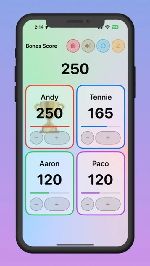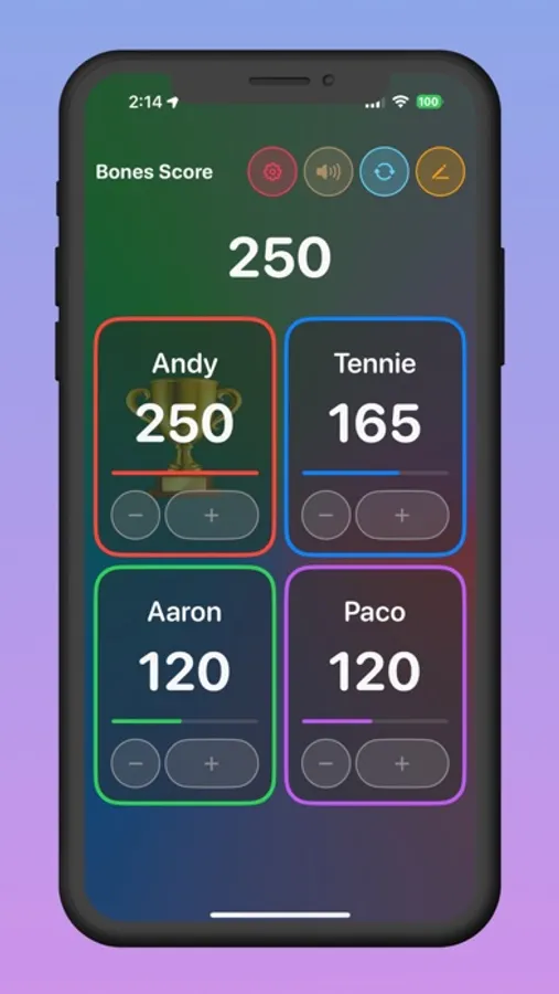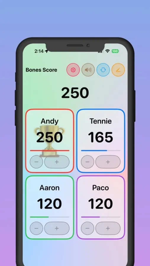 Say goodbye to pen and paper! Bones Score lets you effortlessly record scores for All Fives dominoes games. Focus on the fun of playing, and let the app handle the scorekeeping. Designed with user-friendliness in mind, Bones Score provides an intuitive interface that is easy to navigate. No more fumbling with complex settings or confusing menus—start scoring in seconds!