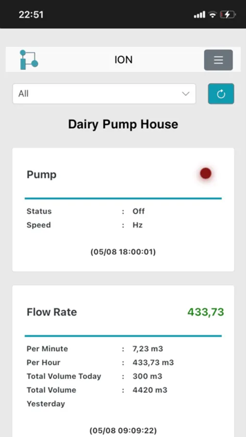 - Water Pump Performance: Maximize irrigation and minimize water wastage with live water pump efficiency tracking.