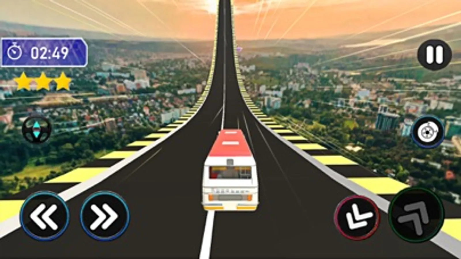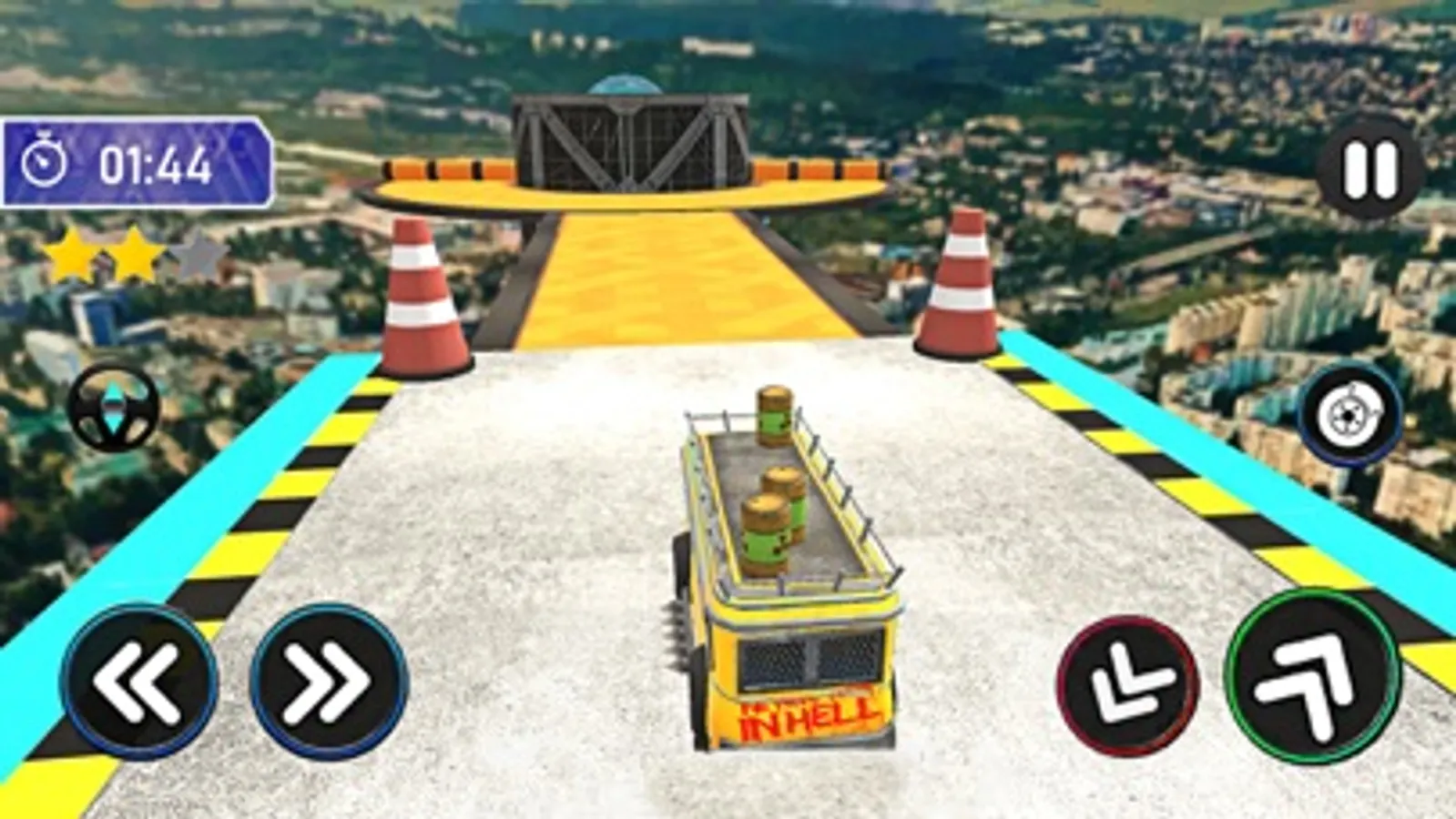 Enjoy more than 10 buses with option of customization in bus stunt games of 2023, choose your buses paint and take them to ramps. Impossible ramp bus crashing games have different weather conditions including rainy, sunny and snow. A new idea of Indonesia ramp bus simulator stunt game where you can perform stunts alone and along with AI as well. Take your mega bus simulator through the ramps, do bus stunts and at the end of level park the bus in bus parking games. Get ready to perform sky stunts in a city coach bus simulator stunt game and land your bus safely in destination.