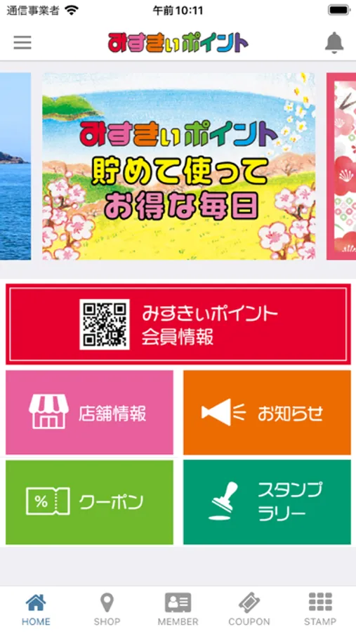 このアプリをダウンロードし、ご利用の際にアプリを起動していただくとポイントが貯まります。カードとの併用可能。加盟店やお得な情報などもチェックできます。
