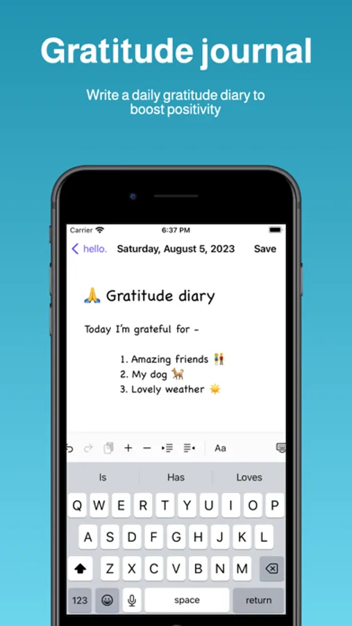 Gratitude is a cornerstone of happiness, yet it’s often overlooked amidst the hustle of modern life. Journey+ encourages you to cultivate gratitude by providing daily prompts and reminders to count your blessings. Expressing gratitude has been scientifically proven to improve mental health, enhance relationships, and foster overall well-being. Our app makes gratitude journaling easy and enjoyable, even for the busiest of individuals.