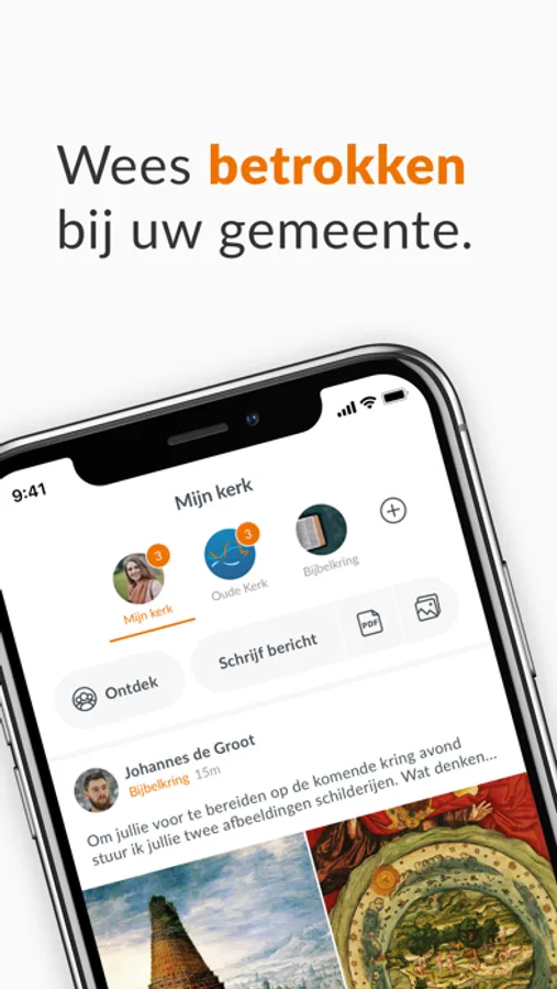 Dankzij onze unieke groepenstructuur helpen wij kerken beter te communiceren. Met de hele gemeenschap, maar ook onderling. U kunt zelf groepen toevoegen en mensen daarvoor uitnodigen. Een slimme timeline zorgt er voor dat iedere gebruiker persoonlijke en relevante informatie ziet.