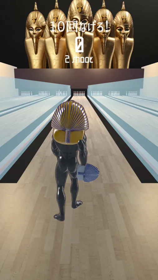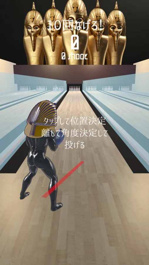 スタートボタンを押すとファラオが左右に移動するので、投げたい方向になった時にタップし、押しっぱなしにします。
