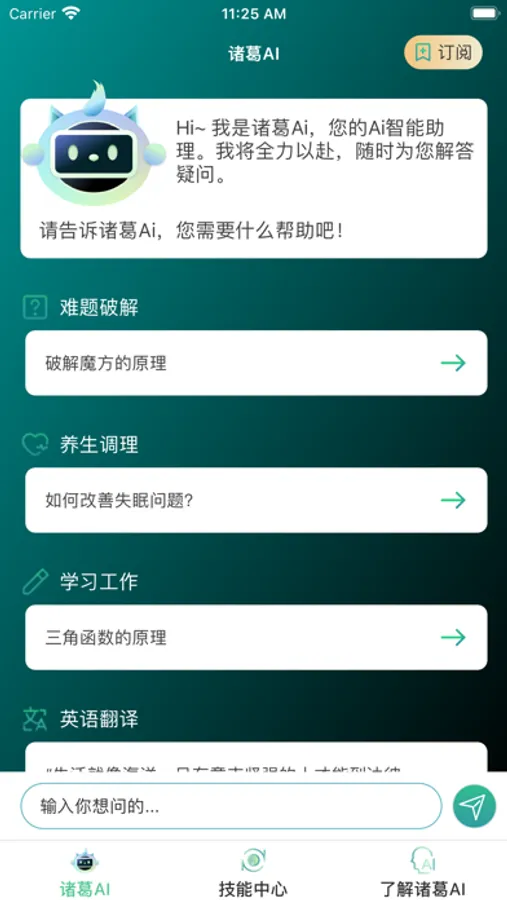 诸葛AI是一款先进的AI智能聊天机器人应用。它可以为您提供文案写作,辅助编程,法律问题解答,中英翻译,还能陪聊天,养生调理建议,撰写旅行攻略,帮助您解决生活中的问题和困难。
