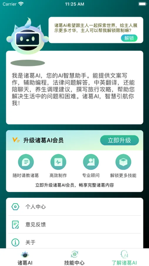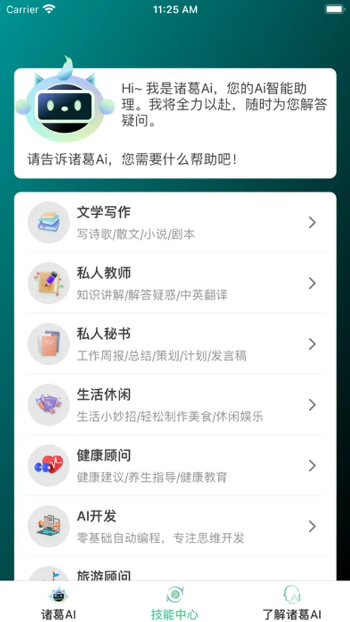 总的来说,诸葛AI是一款功能强大、容易使用的人工智能聊天机器人应用。我们会随时学习何优化,为您提供更好的体验和服务,为您的生活、工作、学习提供贴心的服务。