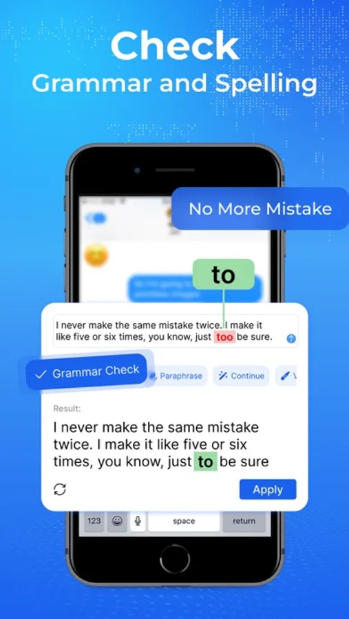 Grammar & spelling check: AI Keyboard can check grammar of your text writing. Spell check your writing, ask AI to provide correct solutions.