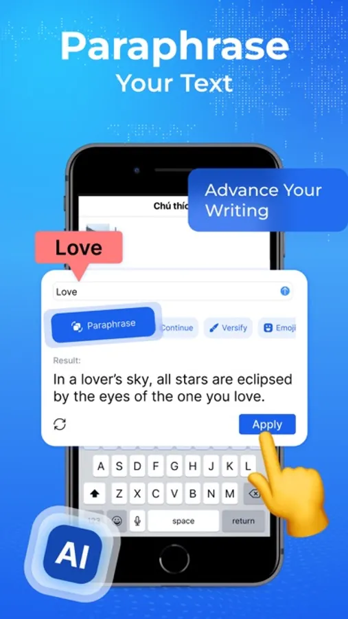 Paraphrase: AI Keyboard can paraphrase your text, ask AI and use as ai writing assistant for proofreading and get correct solutions