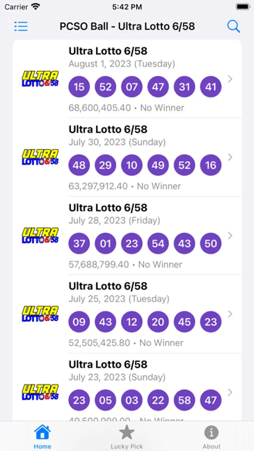 The PCSO BALL app boasts a small download size, ensuring that it won't take up much space on your device. Stay in the loop with the latest lotto draws, and easily access your search history to keep track of your favorite numbers.
