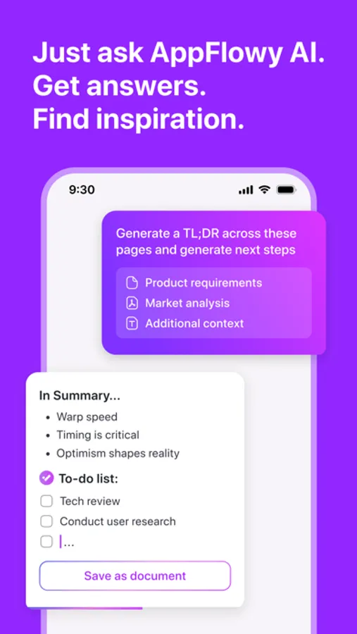 - Get answers. Ask AppFlowy AI questions about your content and get answers in seconds