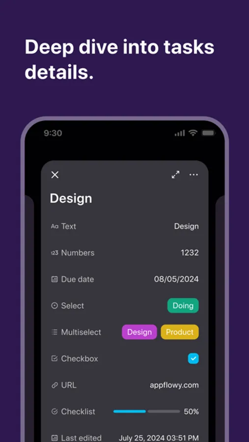 - Tasks & Projects: Break down complex projects into manageable tasks, create your own priority labels, status tags, and set due dates. Capture every details in a database and - visualize data in any way you want