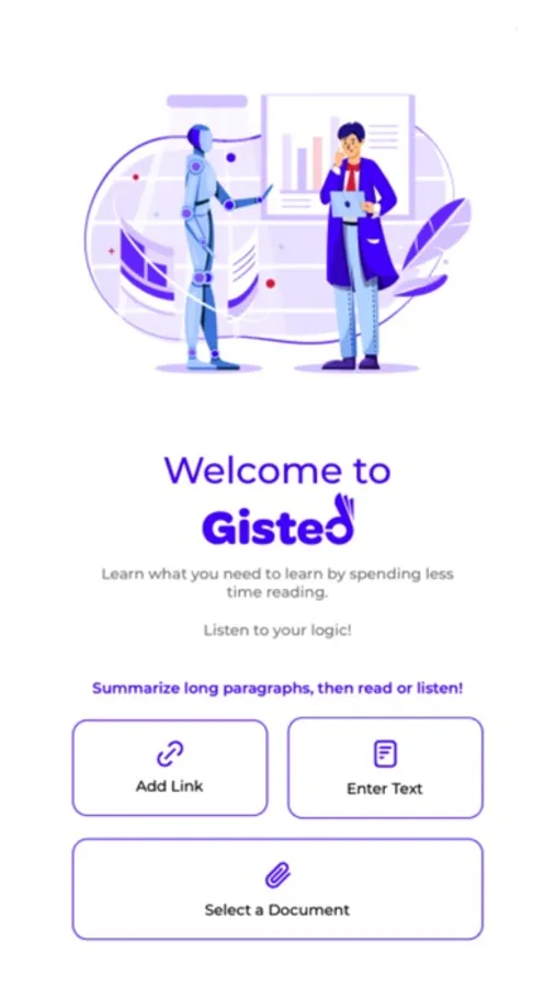 Gisted goes far beyond traditional text summarization by giving you diverse preferences. Reading your AI-based summary is a great option. But the ability to listen to these texts while traveling or multitasking will give you exactly what you need in today's busy life; time! Gisted empowers you to make the most of your time while staying informed and up-to-date with the latest news, research, or any wriMen content.