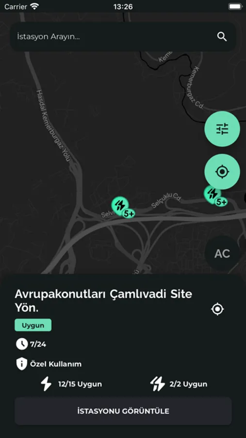 efish ile harita üzerinde istasyonları görebilir, aracınızı şarj edebilirsiniz.
