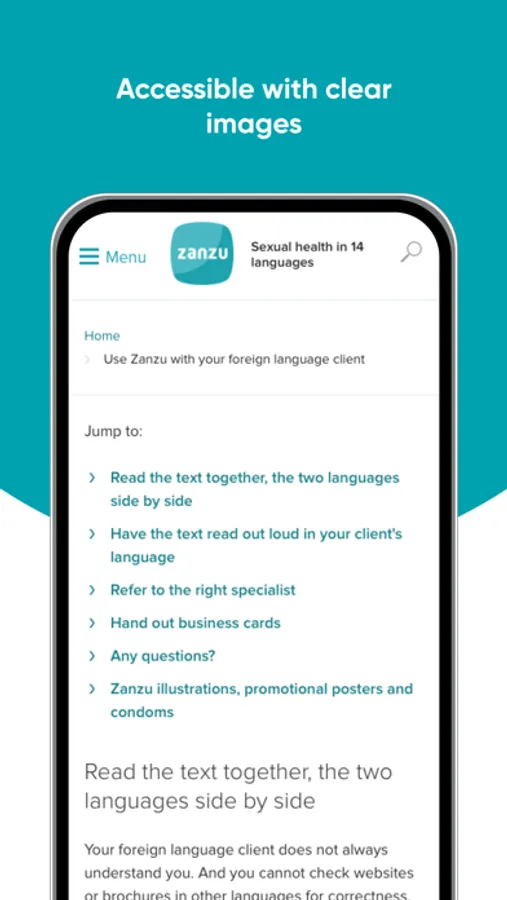 Explore the world of sexual and reproductive health information with confidence through Zanzu website (www.zanzu.be). Get accurate and comprehensive answers about bodily changes, sexual relationships, contraception, pregnancy, childbirth, and child healthcare. With content available in a variety of languages, everyone can access information easily.