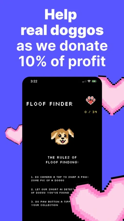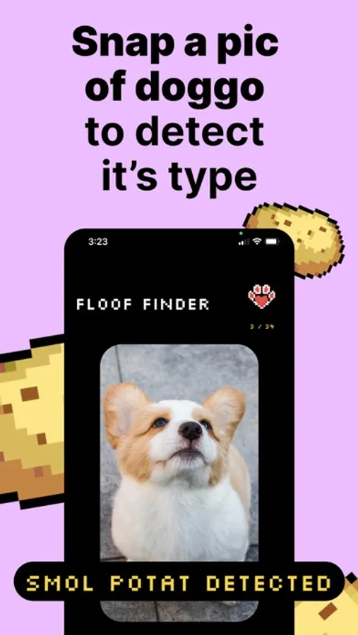 Snap paw-some pics of dogs and detect their unique type. Our smart AI detects more than 30 dog types including but not limited to Bamboozler, Chimkenmuch, Floofzilla, Pupperino and Smol Potat. Unlock a cute character for each detected dog type and collect them all! Share screenshots of dogs you've detected and spread your love for dogs with the world.