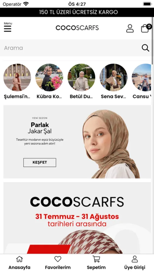 Cocoscarfs.com mobil e-ticaret uygulaması ile anında;