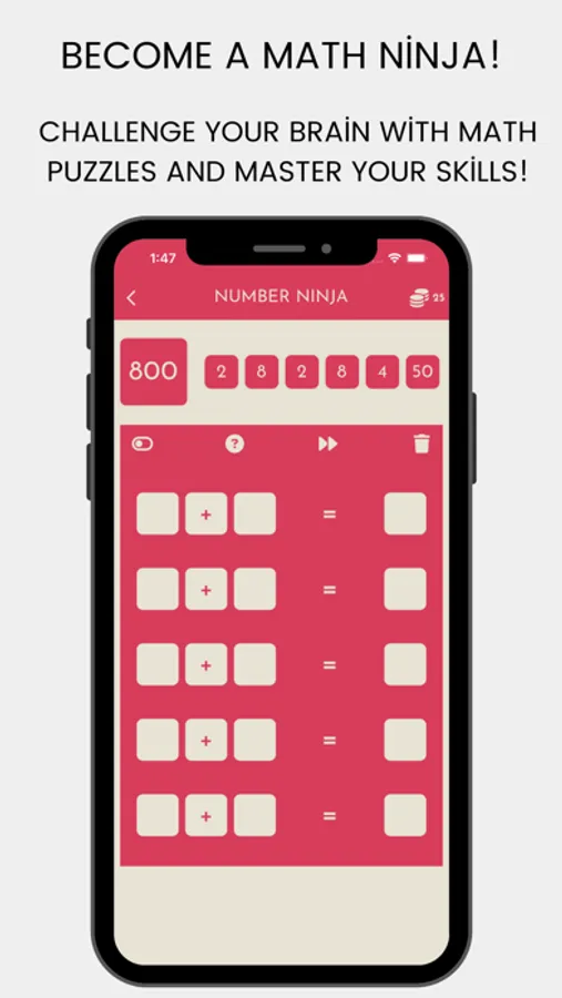 Are you ready for an entertaining puzzle game where you can test your math skills? With Number Ninja - Math Sensei, you can improve your math abilities and engage in brain exercises! The game offers 3 different difficulty levels: 5-number mode, 6-number mode, and 7-number mode. Choose the level that suits you best and become a master in that mode!