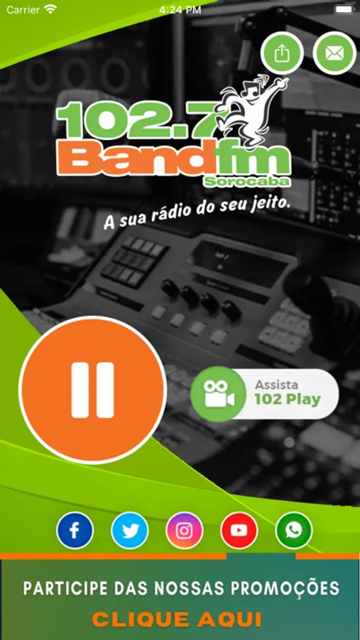 A Rádio Band 102,7 FM Sorocaba é a representante do Grupo Bandeirantes de Comunicação em nossa região há mais de 20 anos. Com a melhor programação, os melhores prêmios, o jornalismo mais ouvido e influente nos últimos anos ,os grandes shows e os melhores comunicadores do rádio, a BAND FM 102,7 é a principal emissora de rádio da região. É por isso que a Band FM é a sua rádio do seu jeito !