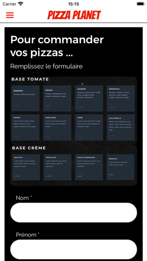 - Retrouvez la carte des pizzas