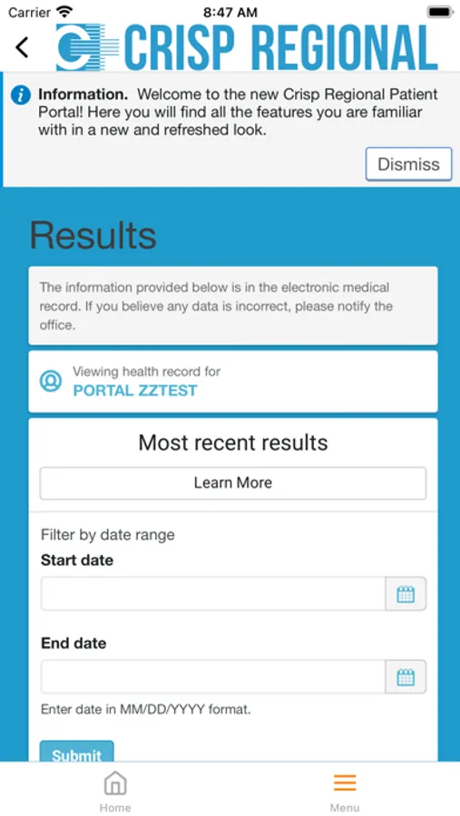 2. The Crisp Regional patient portal gives parents access to their discharge instructions, lab results, medications, medical diagnoses, medical imaging, online bill pay, and secure messaging with select doctor's practices. Parents receive an invitation to their child’s patient portal account via the email they provide at registration.