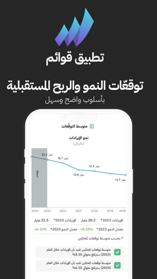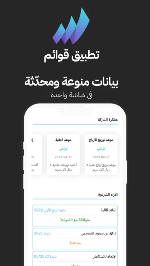 تمكّنك الادوات المتاحة على تطبيق قوائم من إجراء تحليل عميق للشركة لتكون أقرب إلى إجراء استثمار ناجح.