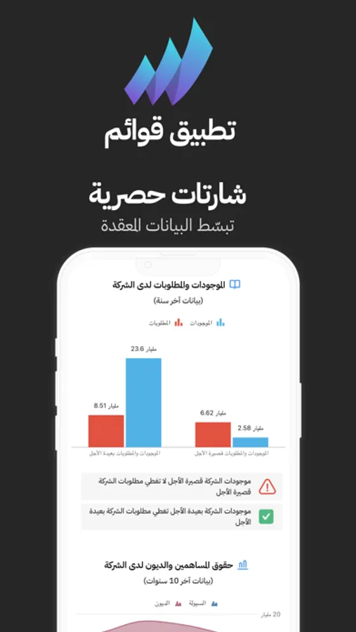 يضع تطبيق قوائم بين يديك بيانات وتحليلات متقدّمة كانت متاحة للشركات والصناديق الاستثمارية فقط ويبسّطها لجميع المستثمرين.