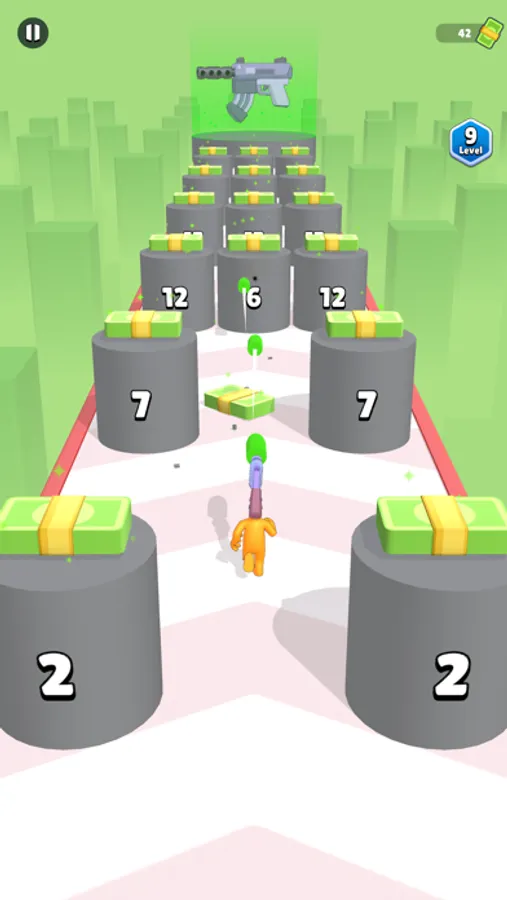 Upgrade your weapon by shooting at doors and passing through them, reach the better weapon by destroying obstacles, and win the game!