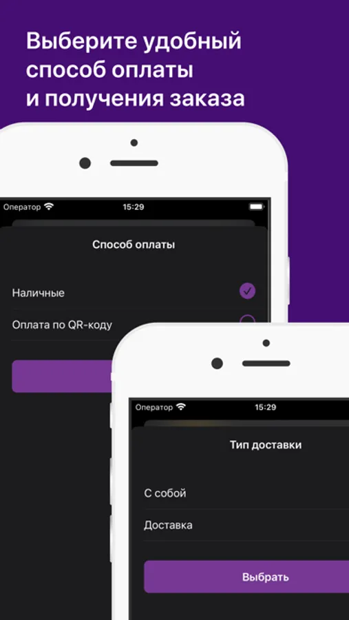 Укажите время, когда хотите прийти за своим заказом или выберите доставку с указанием времени и адреса доставки.