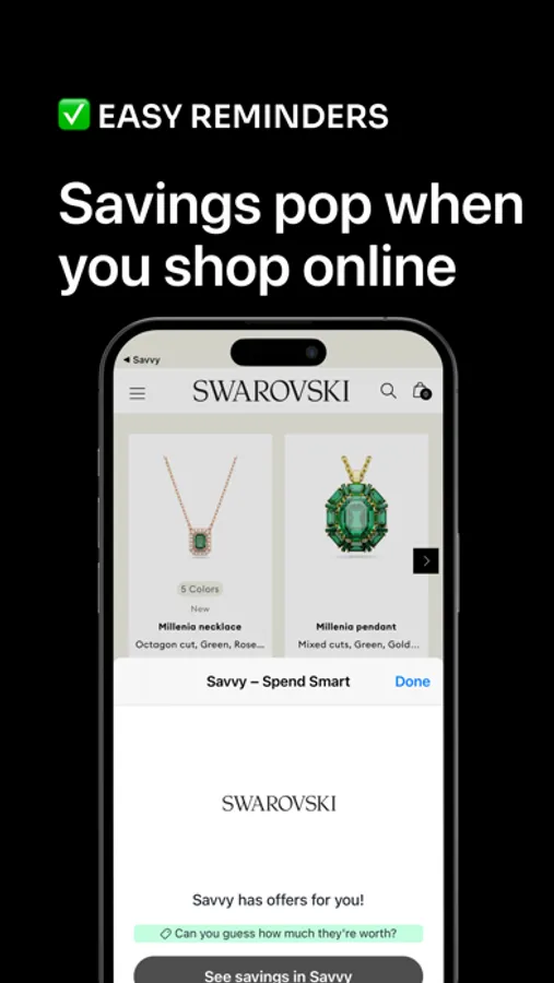 + Savvy's Safari extension "pops when you shop" online, ensuring you stay on top of your savings game.