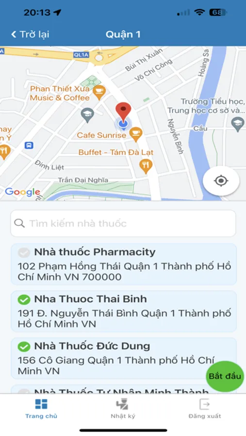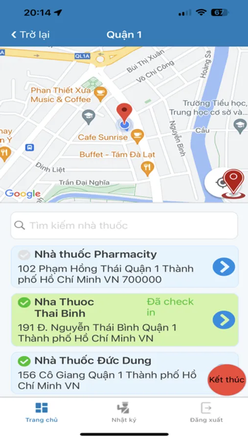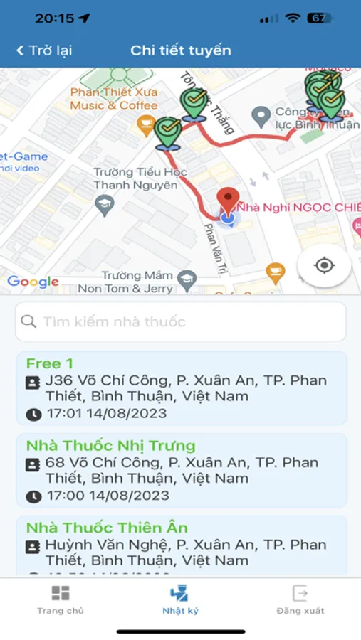 5. Nhật ký: Nhân viên trong quá trình làm việc có thể xem lại thông tin các nhà thuốc đã checkin, giúp nhân viên có thể nắm bắt các nhà thuốc trên tuyến đã được checkin hay chưa.