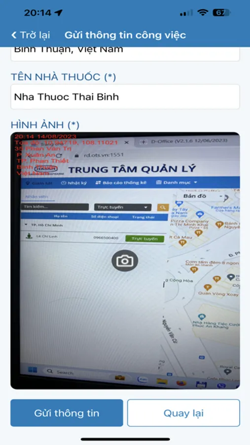 3. Thông tin và hình ảnh: Nhân viên có thể thêm thông tin nhà thuốc và chụp hình tại các điểm nhà thuốc quá trình làm việc. Quản lý có thể xem và quản lý thông tin này.