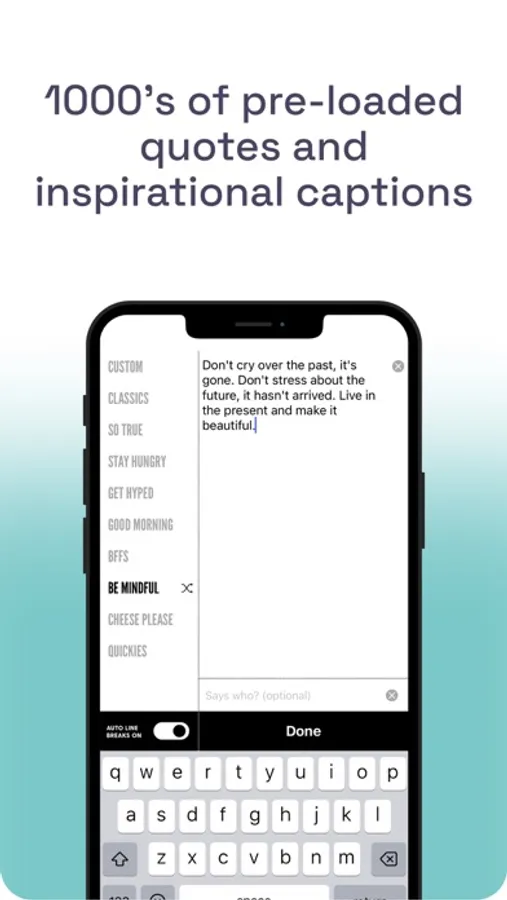 Create amazing type layouts that would normally take minutes - or even hours in other apps - with just a tap. Only Word Swag has the exclusive Typomatic™ type engine that makes it easy.