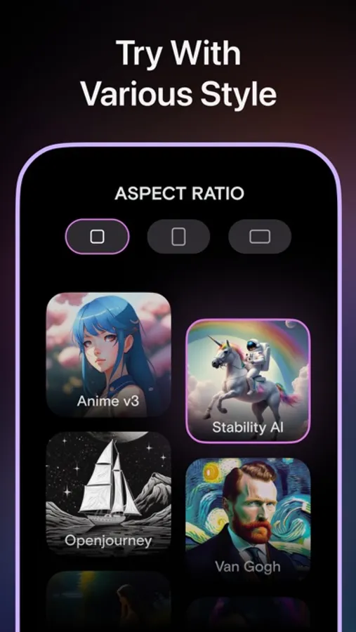 Stable Diffusion AI-Generator app provides an array of styles to choose from, including Anime, Anime v4, Van Gogh, Oil Painting, Mystical, Pixel Art, Cyberpunk, Steampunk, Picasso, Watercolor, Apocalyptic, Low Poly, Drawing, Illustration, Digital Art, Fantasy, Painting ad Photorealistic. Become an AI painter and design your photos effortlessly using the AI Art Photo Generator. Whether you seek amusement or aim to create stunning artwork, our Stable Diffusion AI-Generator app is the perfect companion. Embrace a new world of boundless creativity by downloading Stable Diffusion AI-Generator today!